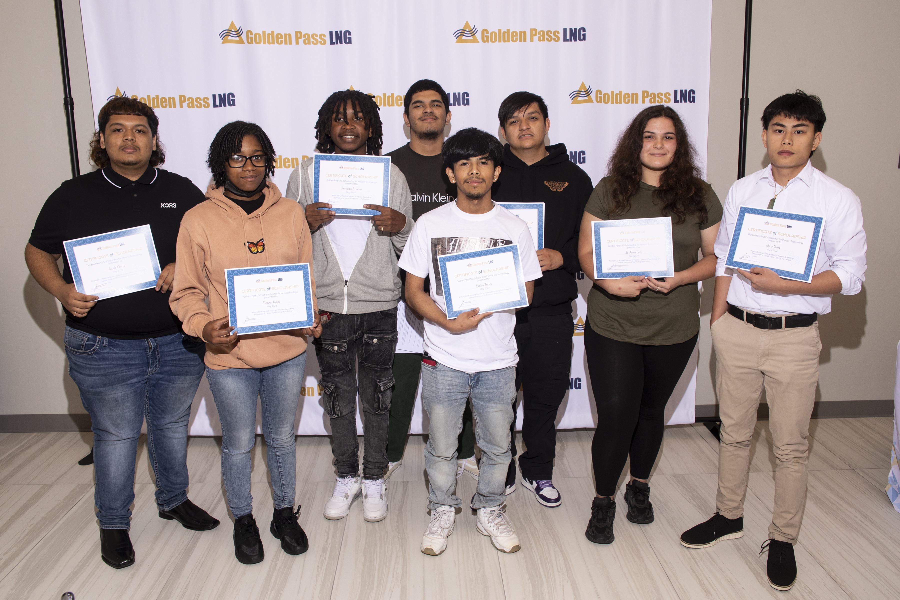 Eight high school graduates know what they’ll be doing a couple of months from now: beginning training for an exciting career – for free – thanks to the Golden Pass LNG Scholarship for Process Technology.